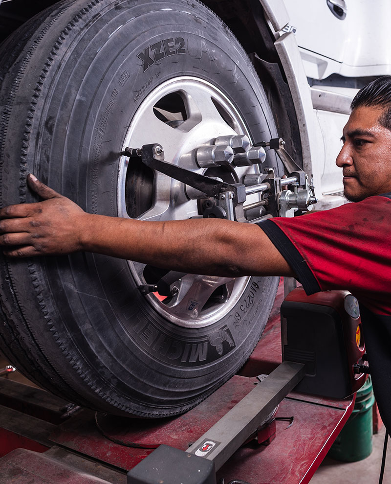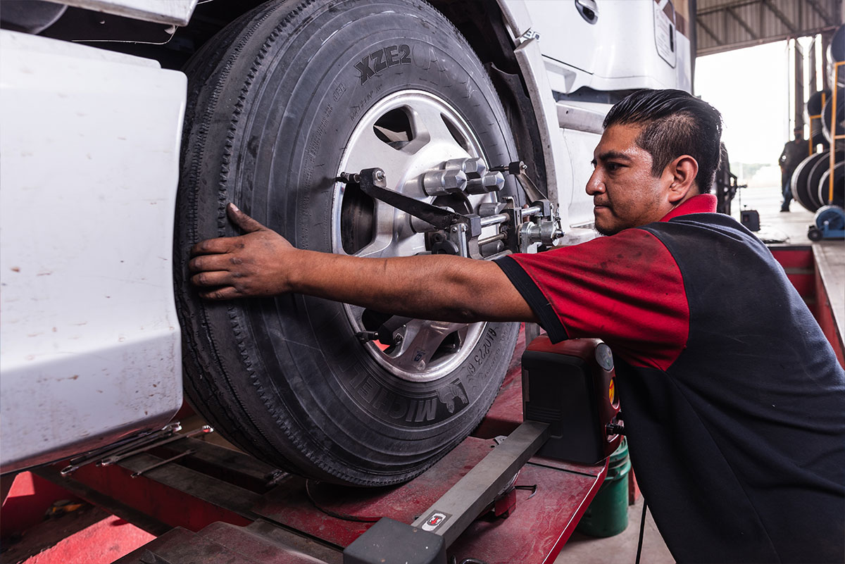 Es un proceso de mantenimiento que consiste en calibrar las llantas de manera correcta, de modo que se encuentren derechas y paralelas, con respecto al suelo y entre ellas. Esto asegura un desgaste parejo de la rodadura de los neumáticos.