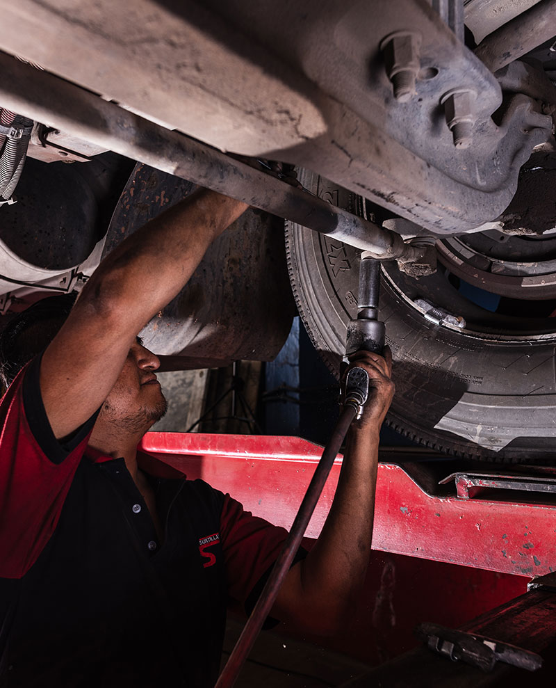 Inspeccionamos posibles fugas, grietas u otros daños en el sistema que conecta el chasis del vehículo con las llantas; verificamos si tu vehículo rebota, se inclina hacia adelante, hacia atrás o se desvía hacia los lados.