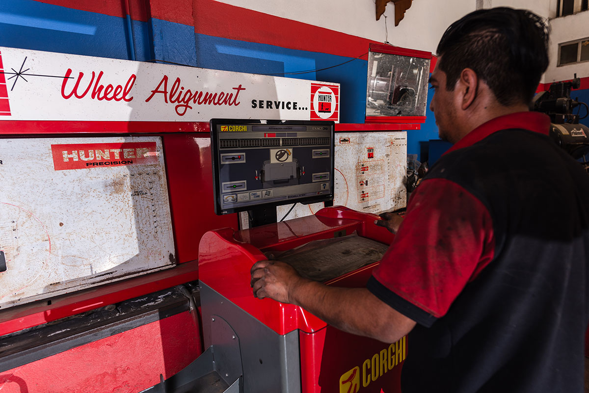 Es un proceso de mantenimiento que consiste en calibrar las llantas de manera correcta, de modo que se encuentren derechas y paralelas, con respecto al suelo y entre ellas. Esto asegura un desgaste parejo de la rodadura de los neumáticos.