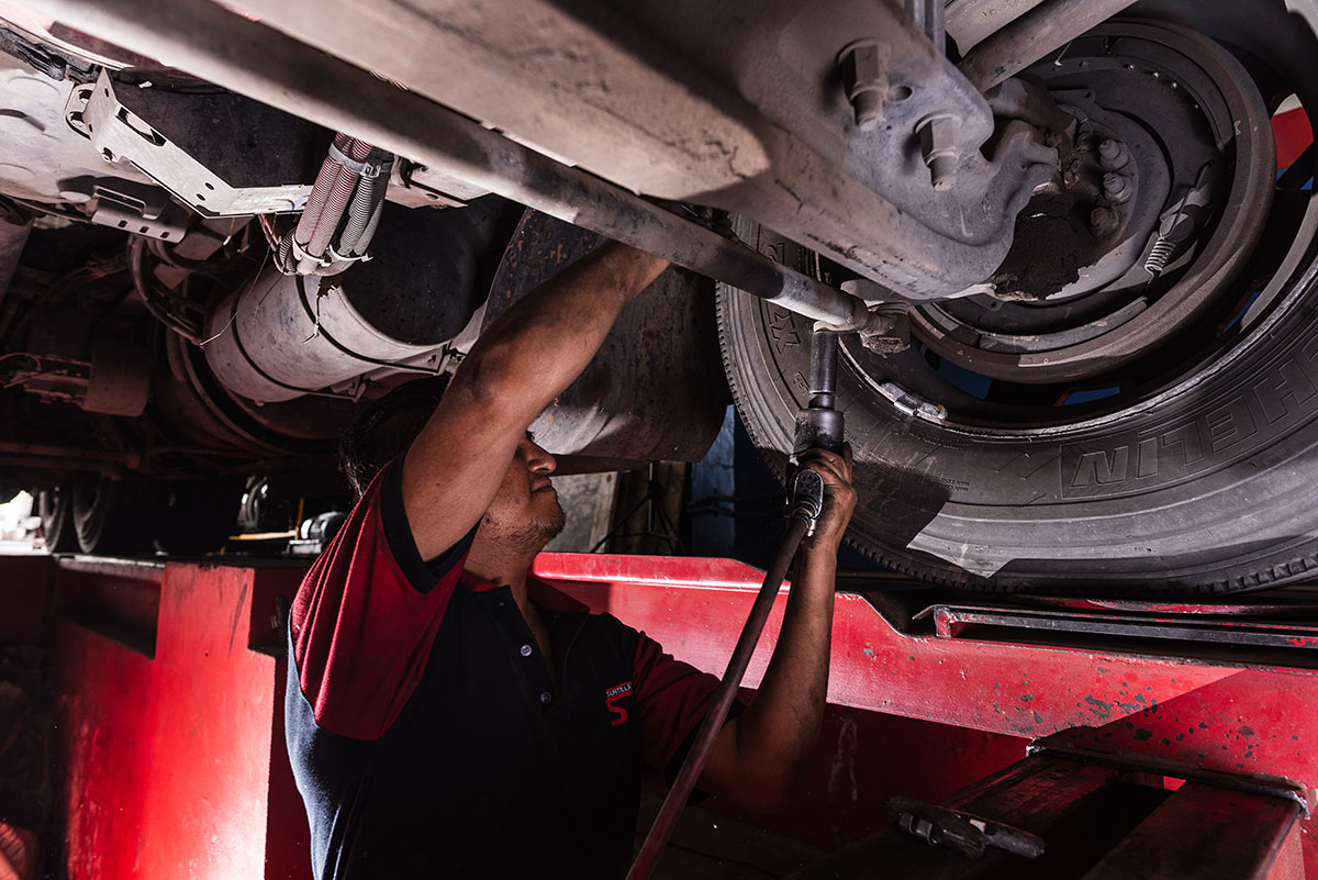 Inspeccionamos posibles fugas, grietas u otros daños en el sistema que conecta el chasis del vehículo con las llantas; verificamos si tu vehículo rebota, se inclina hacia adelante, hacia atrás o se desvía hacia los lados.